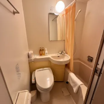 Lovely hotel with many rooms and friendly and welcoming staff. Rooms are a bit dated but that's fine. Bathroom and toilet in the room. Air conditioning and heating, TV and Wifi. Please note that the Onsen and sauna are forbidden to people with tattoos.