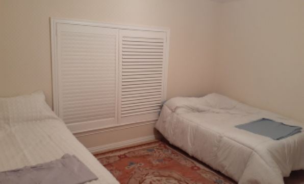 The guest part with 1500 square feet, has very large dining room and study room in first floor with a bar area and sink, coffee maker, microwave and small refrigerator - the house does not have full kitchen. there is a 48" TV on first floor with air channels. Mother's House does not provide cable channel . On second floor, there are two bedrooms and one full bathroom which are ready to use. please do not open locked doors.