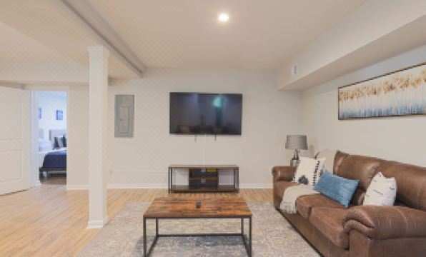 Guests who book this Atlanta property walk into a living room that comes to life with delightful textures and captivating colors. A neutral sofa contrasts beautifully against a gray and white swirled area rug that covers stunning hardwood flooring. Big picture windows allow natural light to flood this open-concept floor plan, keeping the outdoors close even as you spend time indoors.About pets:Pets allowed: dogs less than 20 lbs per pet (limit one pet total).About checkOut:Check out before 11:00 AM.About children:Children allowed: ages 0-17.About checkIn:Check in after 4:00 PM.About smoking:Smoking is not permitted.About minBookingAge:Minimum age to rent: 21.About events:No events allowed.