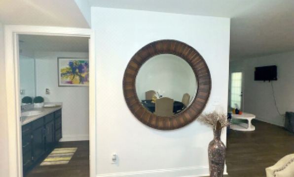 Experience Downtown Atlanta like a local in this 2-bedroom apartment. Marvelous experience await you from the Georgia Aqaurium to the Mercedes Benz Stadium. The kitchen and dining room area is fully equip. The cozy living room is perfect for unwinding after a day of exploring the city. With a king bed and a queen bed, this superb apartment offers a peaceful retreat for guests.