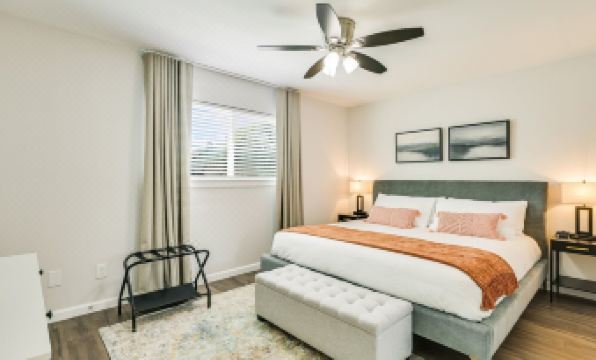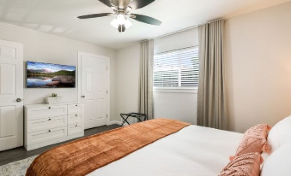 650 sqft. King bed in primary with Queen pullout sofa bed in living room. SMART TVs in both living (55") room and bedroom (43"). 300+MB Wi-Fi.
