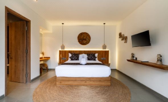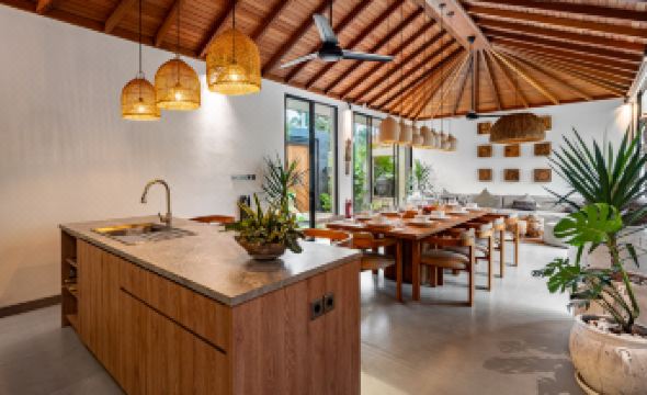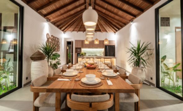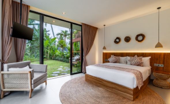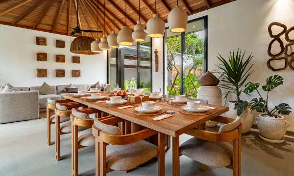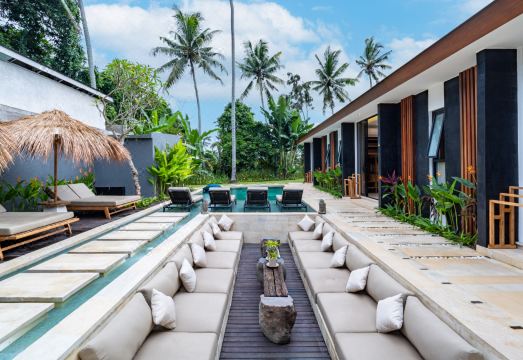 Welcome to Villa de Jade, a 5-bedroom Retreat House and Jungle Hideaway in Singakerta, Ubud. Blending modern design with lush surroundings, this villa is ideal for families or groups seeking a memorable Balinese stay. Each bedroom includes a queen bed, Smart TV, AC, and en-suite bathroom with views of the tropical landscape. The shared spaces feature a cozy living room, dining table for ten, and a full kitchen, supported by ceiling fans, guest toilet, and storage. Outdoors, enjoy an infinity pool framed by gardens, a swing, sunken lounge, three daybeds, and four loungers. A yoga shala offers space for morning practices, while a private gym keeps routines on track. Just minutes from Ubud’s cultural center, Villa de Jade connects comfort, nature, and wellness in one setting. This villa accommodates 10 guests, but can host up to 12 with an additional charge for the 11th and 12th guests.