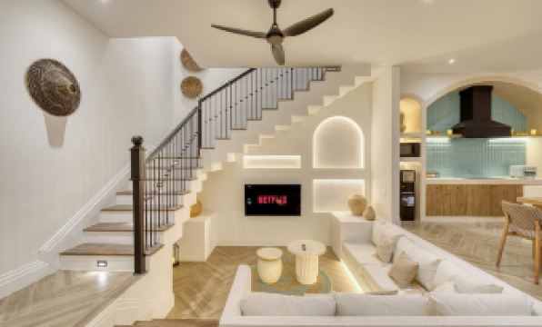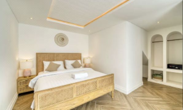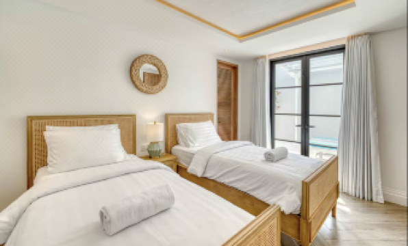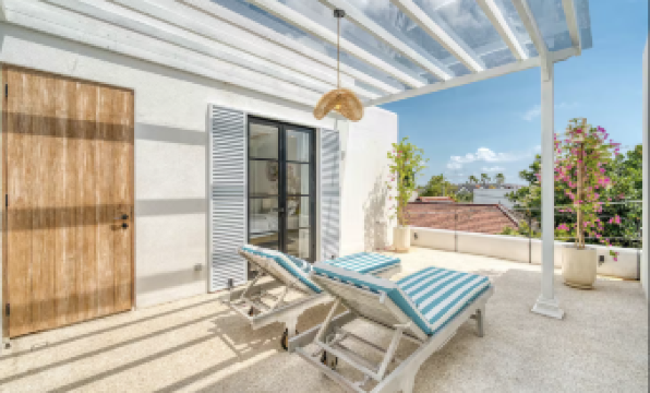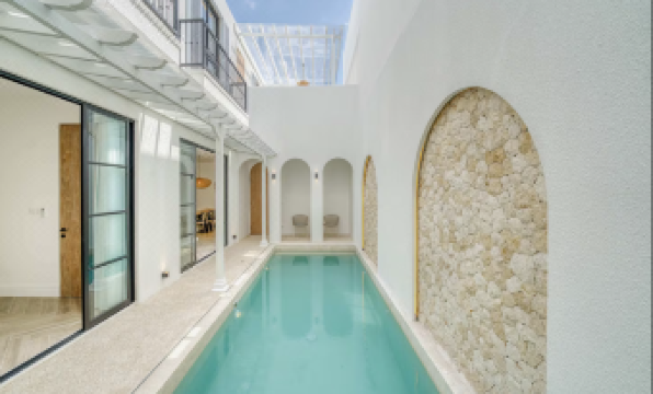 Welcome to Villa Blanche, a stunning 3-bedroom colonial-style getaway in Berawa, Canggu, Bali, blending timeless elegance with modern luxury. This brand-new villa, perfect for families or friends, features spacious living areas and a private 9x2.6m pool, offering a serene retreat just minutes from Berawa Beach, cafes, and Finns Beach Club. The outdoor area is a private paradise, with a 9x2.6m pool ideal for cooling off, complemented by sunbeds on the balcony for relaxing under the sun or stars, designed for total tranquility. The colonial-style living room exudes elegance with a minimalist sunken sofa, smart TV, and air-conditioning, creating an inviting space for unwinding. The sleek, fully equipped kitchen, featuring an electric stove, dispenser, toaster, blender, oven, cookware, utensils, and a terrazzo island with a wooden table and six bar stools, is perfect for culinary adventures or shared meals, with a fridge for chilled drinks and snacks. Three spacious bedrooms ensure comfort, each with air-conditioning and a cozy ambiance. The downstairs bedroom, with a king-size bed, offers direct access to the living area and pool, while the two upstairs bedrooms, one with a king-size bed and one with a double bed, boast pool and balcony views. Each includes a bathroom mirror, with safety boxes in the king-size rooms. Three ensuite bathrooms, plus a downstairs guest toilet, provide ample space, stocked with soap, shampoo, conditioner, and hairdryers. Located in Berawa, the villa is a 2-3 minute walk from Baked Berawa and Fucina Pizzeria, with Mou Gelato and Happy in Berawa nearby. Finns Beach Club is a 15-minute walk or 4-5 minute motorbike ride, and Pepito Supermarket is 10 minutes away. The peaceful neighbourhood balances proximity to vibrant spots like Miss Fish and Jalapeno with tranquillity, offering access to surfing, culture, and nightlife. With high-speed WiFi, daily cleaning, Villa Blanche is your dream Bali retreat for relaxation.