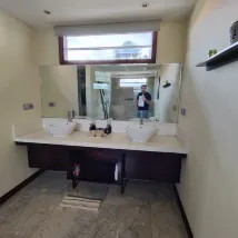 We stayed here in Villa 3 as 2 families of 7 in total all adults, the layout is perfect with the kitchen and living area separate to all the other 4 bedrooms and all having their own bathrooms. Towle’s and sheets changed every day, free taxi to the town (5 min) anything you need you just message them and they attend straight away! Pool is clean and serviced well, Tommy and Aguse were amazing! When we arrived from Ubud to O Villa we were all a little alarmed at the tiny back street that the Villa is located on… but we had no need to be, the place itself is great. Even though you are out of the main town, you have shops and eateries on your doorstep, including Basils and Coffee Cartel! Thank you O Villa for a perfect stay in Bali! Jo and Dawn