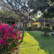 지어진지 좀 된 곳이라 방 가구나 화장실이 좀 낡은것, 정원에 비해 방 안은 살짝 덜 예쁜것, 배수 문제 때문인지 샤워 후 좀 냄새가 올라오는 것은 단점인데, 그 외에 다이빙숍을 겸하고 있는 큰 리조트로서의 여러 장점이 이를 커버해줍니다. 넓은 방과 화장실, 장비 말리기 편한 방 앞 널찍한 개인 공간, 해변용 타월 제공, 아름다운 정원과 편리한 식당, 가까운 해변, 공항이나 발리 다른 지역으로의 픽업 드랍 서비스 등이 매우매우 편하고 시간과 비용을 절약해줍니다. (전날 밤에만 예약하면 다 준비됨)