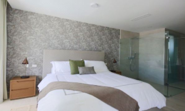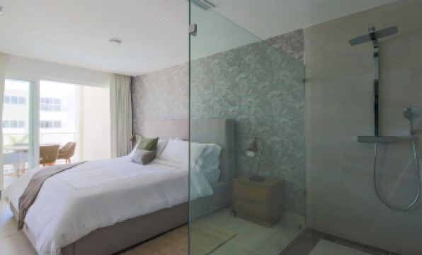 The 1 bedroom Penthouse is just the unique spot within this new project as it is the only unit with a straight view to the beautifful blui water water sea. It consists of an integrated kitchen and living room. In the living room you can find a foldable sofa (Queen sizebed) and a full bathroom. Then the main bedroom consisting of a king bed, dressing room and full bathroom. It is completed with a private juge terrace with a dining room and lounge overlooking the pool and the sea.
