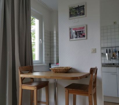 32m² apartment on the 3rd floor without elevator, bathroom and toilet separated with hand wash soap and hair dryer, super comfort bed 1,80m * 2,00m, 55 cm high with adjustable slatted frames and new mattresses from the winner, bed 1, sofa bed, pulled out 1,30m wide, the kitchen is equipped with 4 cooking plates, egg cooker, kettle, toaster and coffee maker, and a refrigerator