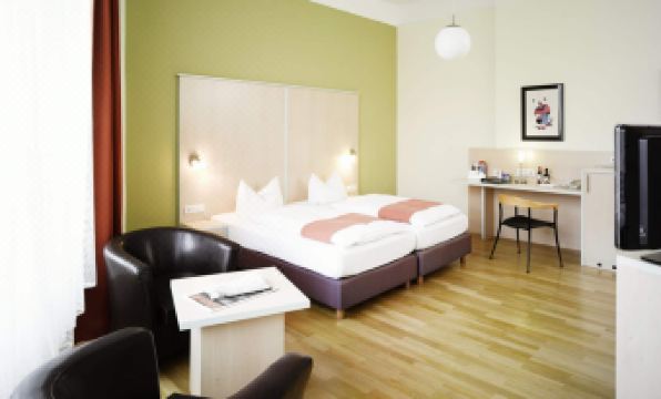 At first glance when approaching the building from the outside we were hesitant about our choice of hotel as the outside of the building, which is a very old structure, requires a lot of maintenance but once inside our impression changed. We arrived at around 15h00 and were met at reception by a very friendly and helpful gentleman. Our room was ready so we were immediately able to check in and made our way up to our room which was on the 4th floor. The lift was unfortunately out of service for the entire week that we were resident at the hotel necessitating us trudging up and down stairs for the duration of our stay but at the end of the day it was not a big issue except on our day of arrival and then again on departure as we had heavy bags that needed to be lugged up and down. Our room was large, probably 35 m2 in size with a very high ceiling (probably 3 m high) and had two large opening windows facing onto a side road but due to double glazing was extremely quiet indeed. As you entered the room, the left hand wall was flanked by a double door cupboard which also contained the safe, a couple of shelves and some hanging space. Next to the closed section of the cupboard was another open hanging space section followed by a wide desk area and then a raised section that the TV stood on. Below the TV was a cupboard that was obviously designed for a fridge but, unfortunately, no fridge was installed which was a pity as the room got hot during the course of the day and upon returning in the afternoon a cold glass of liquid would have been most welcome. On the right as you walk in the door was the large modern bathroom which consisted of a toilet, basin and good shower. In the basin liquid soap was supplied and in the shower there was liquid body wash. The bedroom contained two comfortable three quarter beds pushed together with four comfortable pillows and each side of the bed had its own duvet which seems to be common in Europe. Apart from the main bed, the room consisted of two comfortable chairs a stool for the desk and another handy table. A long room wide headboard incorporating the light switches and the bedside lights was at the head of the beds. The room and bathroom where generally well maintained but as mentioned previously the hotel is situated in an old building and hence the high ceilings and wooden floors (except in the bathroom). The window frames are wooden and, in our room, faced the sun so the wood was dry and required a little TLC. The room and bathroom where generally well maintained so no issues there. A coffee / tea station is offered in the room and two complimentary bottles of water were provided in the room upon our arrival. This bottled water is only offered upon your arrival thereafter you would need to purchase your own and take it to your room. There is no coin laundry room in the hotel but there is a laundry service if so desired. The hotel WIFI was good and I managed to stream whatever I wanted without issue