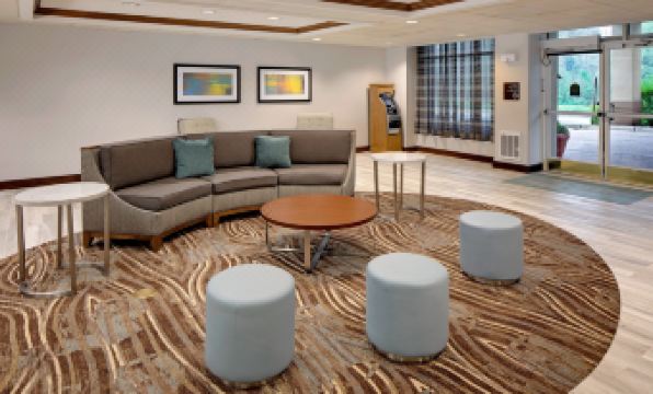 The lady who checked us in was very nice. On the surface the room looked clean but after being there for a few minutes we could tell it was a quick job. The bathroom sink didn't drain, and the microwave did not work. The reason why we chose this hotel is my daughter had a hockey tournament, and we always pick a hotel that have a breakfast because many times must go straight to the rink early in the morning. Not only did the hotels say they had an included breakfast, but they listed it as buffet. When we arrived in the correct time breakfast time, there was one heating dish that had kielbasa type sausage and that was it for hot options I asked if there would be eggs and he said I said what about anything else They said that's all they had There was some oatmeal in the corner but it inedible. No Juice no milk, only water and coffee. There were no mugs for the coffee, I was told as soon as somebody else was done with their mug they would give it to me. Several of the guests waited hoping they would do the dishes soon. We had to find food in a tight timeframe that was not expected. When I talked to the front desk, they said this was what their breakfast is and were not willing to do more, some guests complained more vigorously and were given juices and snacks from the shop she was not willing to help us in any way. I would not recommend this property, which is a shame as we have always had good luck with Hilton properties in the past.