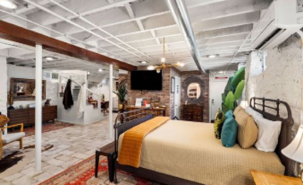 By far our most popular & creative unit on the property! The Boiler Room includes a queen size bed and its own private bathroom + fully stocked wine cabinet + a fully stocked craft beer fridge! The listing is on the garden level and it is our most spacious and popular unit. The perfect space for a digital nomad!