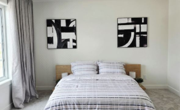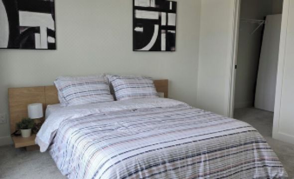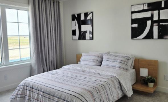 Master suite with a plush queen bed, walk-in closet & ensuite bath