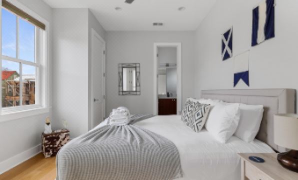 Our spacious 2nd-floor condo, ‘The Globetrotter Suite D’, is ideal for groups of 4-6 guests with 2 bedrooms, and 2 full baths. Located just off Spring Street, location and parking won't be an issue here!