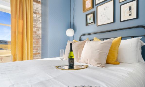The Manhattan offers a charming third-floor escape, perfect for 2 guests seeking a cozy getaway. This spacious apartment features 1 Queen bedroom and 1 full bath with a walk-in shower (1BR/1BA).