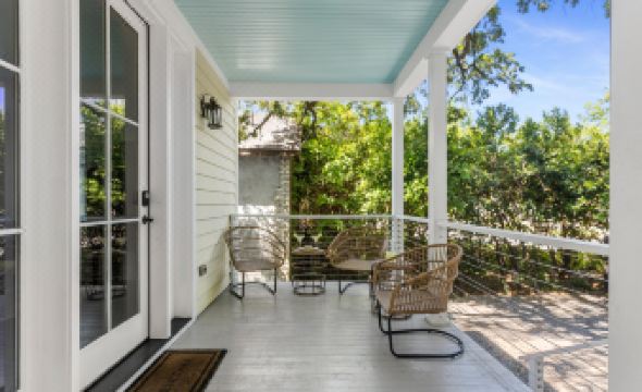 A Spacious Front Porch - Upon arrival, guests will ascend a flight of stairs to the spacious front porch. Enjoy the gorgeous Charleston weather, cocktails at sunset, or your morning cup of coffee while relaxing in one of the four porch chairs.