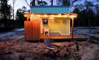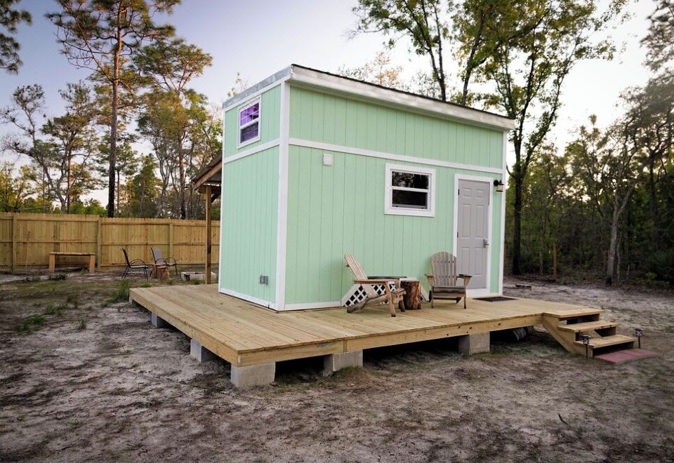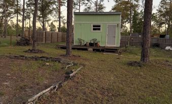 The Casita Verde tiny house sits on a 2.5 acre property, that’s down a peaceful country road. Bring the dog! The perimeter of the tiny house area is totally fenced off and has its own gated driveway entrance from the road.