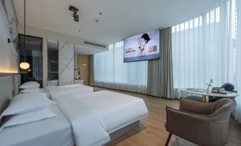 非常滿意這次入住體驗!酒店位置優越,交通便利,周邊餐飲購物齊全對門就是大的市場,前台服務熱情專業,辦理入住高效,房間的空間都比較大,辦公的無線很快速也方便。