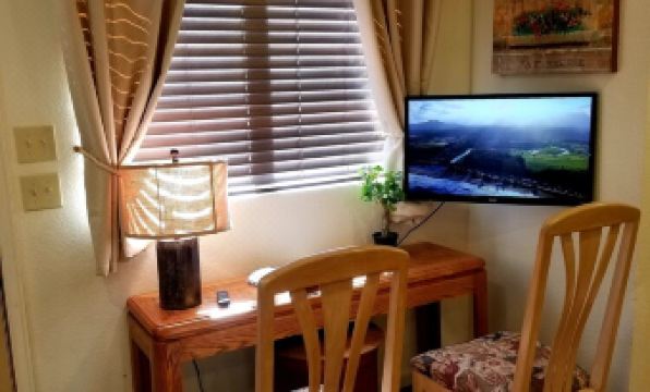 This Studio sits below a rocky crest in the shadow of 14,115' Pikes Peak, and the Kitchenette window frames a perfect view of the massive mountain where America The Beautiful lyrics were penned.