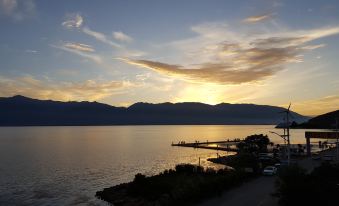 酒店就在洱海邊,空氣好,早上起床出門就見洱海,附件吃飯方便,還有超市及菜市場,離s彎道二十多公里,老闆一家人比較熱情,房間設施及衞生一般。