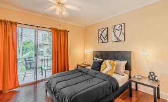 This stylish and spacious 2 bedroom, 2 bath condo located in Uptown Dallas includes a fully appointed gourmet kitchen with with all appliances such as a stove, oven, coffee maker, electric kettle, refrigerator, dishwasher, toaster, and microwave. The modern living room has an open floor plan with a comfy sofa and bedrooms with cozy memory foam mattresses that come with beautiful crisp bamboo linens, various pillows, and bed coverings. The condo also includes a private balcony and backyard!