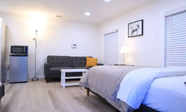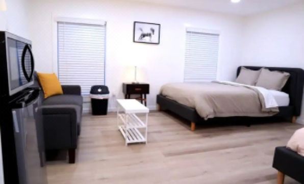 It's a cute studio about 350sqft. Perfect for up to 4 people. The studio is private and is attached to the house, you will have your own entrance to the studio independent from the house. Microwave, fridge and wardrobe available. Wifi enabled. Two queen beds Parking in the backyard is gated.