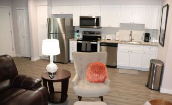 Updated condo! Everything is BRAND NEW including all the furnishings! Large open condo on top floor! New everything including kitchen cabinets, granite counter tops, appliances, flooring, bathroom and includes a full size washer/dryer! No carpet, all hardwood = hypoallergenic! The kitchen is fully loaded with everything you need to cook and enjoy the new appliances. All new towels, linens and bedding make it easy to move in without having to worry about bringing anything with you. Large windows allow sunlight to brighten your day, while being on the top floor allows complete privacy from the world below. Enjoy your large, private balcony that includes a cute sitting area with chairs and a table! No neighbors above (this is a top floor unit) or below you (storage only) and the staircase to the unit is private and only shared by 2 other units! This neighborhood is quaint and established and is home to everyone from families, the retired and "up and comers".