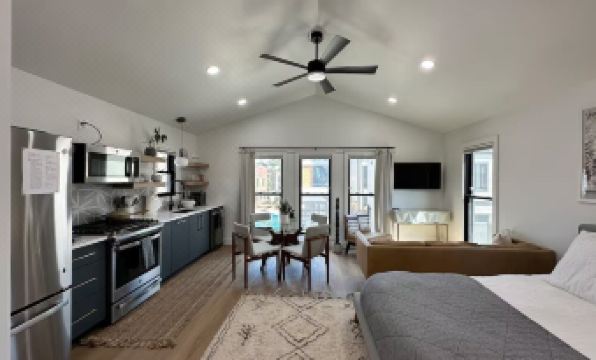 Experience charm and convenience at our studio guesthouse in historic Curtis Park, near RiNo's art scene and Five Points' rich jazz heritage. Just minutes from Larimer Street's lively bars and unique shops, and close to park amenities like a tennis and basketball court. Enjoy a walk through Denver's oldest neighborhood or explore local street murals. Though compact, our unit is fully equipped with a full kitchen, queen bed, TV, and more—perfect for exploring Denver's dynamic neighborhoods!
