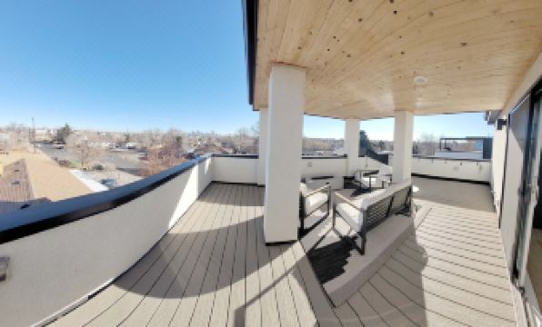 Step outside onto your fully furnished, covered rooftop patio and take in stunning city views while cozying up around the fire pit. Inside, you'll be surrounded by stylish comfort, from the modern kitchen featuring top-of-the-line Jenn-Air appliances to the spacious living areas with vaulted ceilings that let natural light pour in.