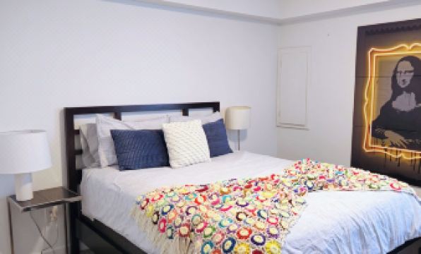 The master bedroom serves as a private sanctuary, featuring a luxurious steam shower, dual vanities, a spacious closet, and a wall-mounted smart TV for your ultimate relaxation. Adjacent to the master, a detached guest suite with its own bathroom offers both comfort and privacy for visitors. Upstairs, another bedroom includes a stylish wet bar and opens onto a private rooftop balcony—an ideal spot to take in sweeping city views.