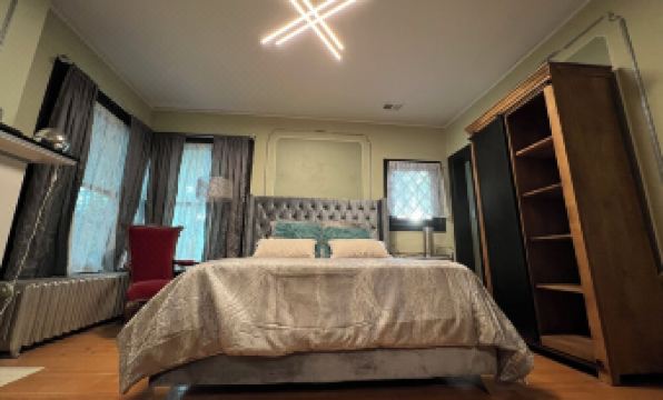 You'll have access to the entire 4 storied house, which includes the garden-level suite which has it's own separate entrance, large-bedroom, bathroom w/water-fall shower and full-service kitchen. For the upper part of the house, you'll have access to 4-bedrooms, another full-kitchen (chef style), 2.5 bathrooms, three upper-level balconies, a large dining room area (adjacent to the kitchen) and a large living room. The bathrooms are newly remodeled with highly-luxurious finishes, with the master having a large/modern walk-in shower with extra-large waterfall shower-head, LED lighting in shelving and embedded in walls and 6-water jets coming from the wall for a spa-like bathing experience. In the top-floor bathroom, there is a large soaker-tub with all of the modern touches/amenities.