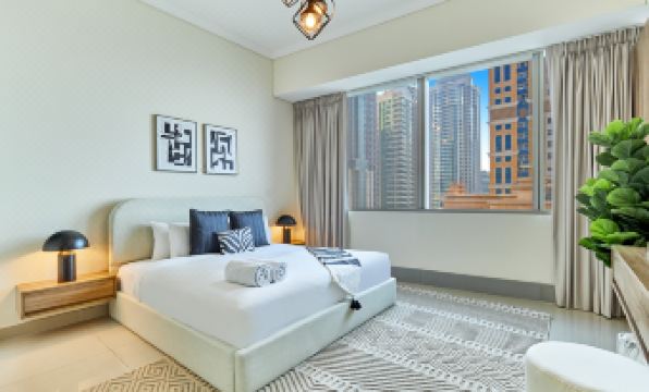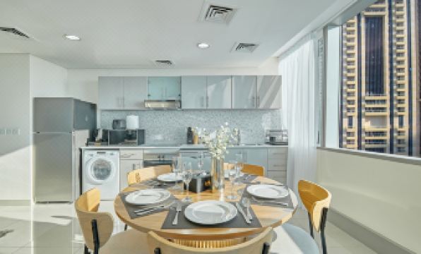 Stay in this stylish 2-bedroom apartment on the 54th floor of Ocean Heights, featuring modern decor, attached bathrooms, and two balconies offering stunning sea views. The fully equipped kitchen and spacious layout provide a comfortable and luxurious retreat. Ideally located in Dubai Marina, you’ll be just minutes from Dubai Mall, Palm Jumeirah, and The Walk JBR, placing world-class shopping, dining, and entertainment at your doorstep. Ocean Heights offers premium amenities, including covered parking, high-speed elevators, indoor and outdoor pools, a fully equipped gym, a sauna, and dedicated kids' play areas. Enjoy the vibrant lifestyle of Dubai Marina with easy access to nightlife and waterfront attractions. With bnbme’s daily housekeeping and personalized concierge services available upon request, your stay is guaranteed to be seamless and stress-free.