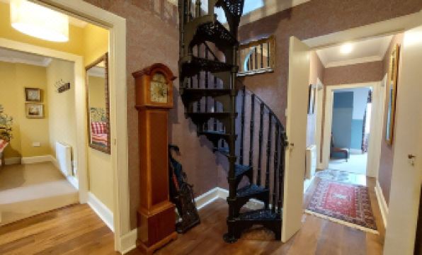 Steeped in history, James Court was built in 1723 and has housed many notable figures in its lifetime. A stone archway leads to a fairy tale traditional spiral staircase which rises to this beautiful charming apartment - just off the Royal Mile in Edinburgh's historic Old Town. The property itself is a fifth floor apartment laid out over two levels & joined by an inner spiral staircase. Elegantly furnished, & with stunning views over the city, this will provide a dream stay in Edinburgh.