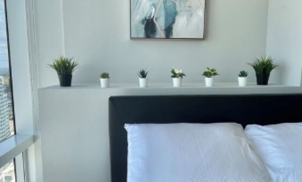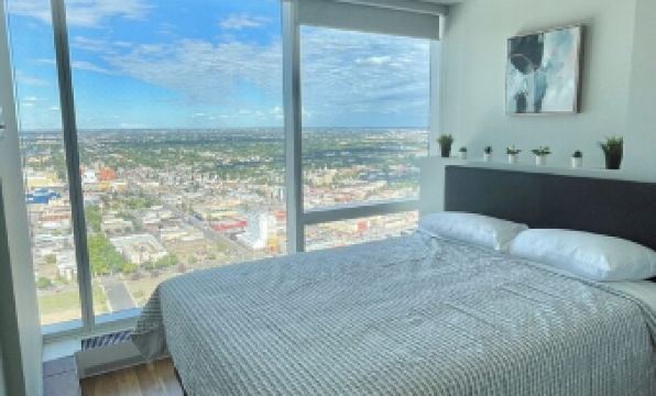 The space is Ideal for TRAVELING NURSES and working professionals temporarily relocating to Edmonton! This stylishly furnished 2 bedroom and 2 bathroom condo is the perfect oasis from which to enjoy the city and includes everything you might need - fully equipped with a coffee maker, spices, iron, in suite laundry, U/G parking (clearance 6'5" - check if you have a truck or suv for height), A/C, etc etc - inquire if there's anything specific you'll need to make your stay more enjoyable.