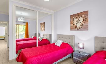Beautiful house "Sol e Mar", built in 2018, surrounded by meadows and fields. In the hamlet Alcaria Cova 4 km from the centre of Estói, 9 km from the centre of São Brás de Alportel, 12 km from the centre of Olhão, on a slope, in the residential district, 12 km from the sea, in the countryside. Private: property 16'000 m2 (fenced), terraced garden with trees, swimming pool angular (8 x 4 m, depth 115 - 185 cm, seasonal availability: 01.Jan. - 31.Dec.) with internal staircase. 650 m long narrow motor access. Parking on the premises. Shop 1.4 km, supermarket 4.5 km, restaurant 1.5 km, bus stop "Vale Grande (Cerro), Estoi" 1.5 km, railway station "Faro" 16.1 km, sandy beach "Armona/Culatra" 12 km, indoor swimming pool 9 km. Golf course (18 hole) 18 km, tennis 9 km. The owner does not accept any youth groups. "Sol e Mar", 4-room house 145 m2. Bright, modern furnishings: living/dining room with open-hearth fireplace, dining table, satellite TV and hi-fi system. Exit to the terrace. 1 room with 1 french bed (160 cm, length 200 cm), shower/WC and double hand-basin. Exit to the terrace. 1 room with 2 beds (100 cm, length 200 cm), bath/WC and double hand-basin. Exit to the garden. 1 room with 2 beds (100 cm, length 200 cm), shower/WC. Exit to the garden. Kitchen (oven, 4 ceramic glass hob hotplates, toaster, kettle, microwave, freezer, electric coffee machine). Sep. WC. Electric heating, air-conditioning. Heating not available in all rooms. Terrace. Terrace furniture, barbecue, deck chairs (6), box-room. Beautiful panoramic view. Facilities: washing machine, iron, children's high chair, baby cot, hair dryer. Internet (WiFi, free). Please note: non-smokers only. Smoke alarm, fire extinguisher. 110309/AL