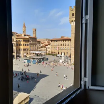 Perfect location, i went to uffizi twice because the hotel is 2 mins walking distance to uffizi. Really enjoy the view and vibe espectially in the morining and evening when i open the window feeling authentic and beautiful firenze. missing the days there already. The pictures are taken in the room in the morning.