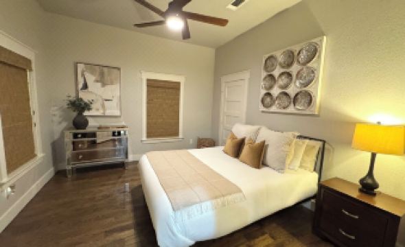 This charming 3BR/2BA bungalow is located in North FW! Come explore the All-American city, whether you’re coming for business or pleasure, and stay in comfort and style in a quiet neighborhood with lots of privacy. Great location with easy access to highway 35 and FM 199/Jacksboro Hwy - less than 2 miles from downtown and Sundance Square, Rockwood Golf Course, 1.2 miles to Stockyards, and approx 12-15 min to Will Rogers Arena, FW Arts District, Bass Performance Hall, FW Zoo, and Dickie's Arena. This home has been fully renovated with beautiful modern finishes and cozy furnishings while keeping its historic charm. Backyard has covered patio with decorative lighting and bbq pit with plenty of seating great for an outdoor bbq, hanging out with friends and family or enjoying the evening view of FW skyline. Includes WIFI and movie streaming.About pets:Pets allowed: dogs less than 50 lbs per pet (limit 2 pets total).About checkOut:Check out before 11:00 AM.About children:Children allowed: ages 0-17.About customRules:Parking in driveway and in front of house..Trash days are Tuesday,Additional charge of $40 if bbq pit was used and not cleaned..About checkIn:Check in after 4:00 PM.About smoking:Smoking is not permitted.About minBookingAge:Minimum age to rent: 21.About events:No events allowed.