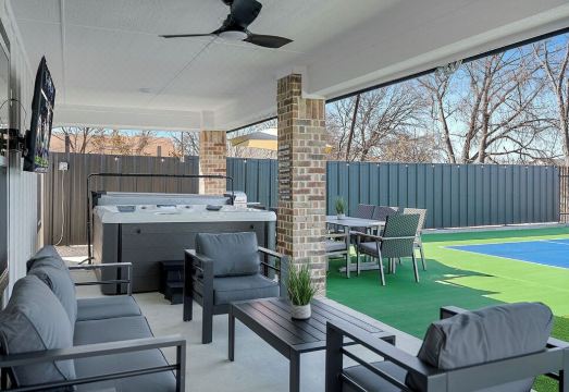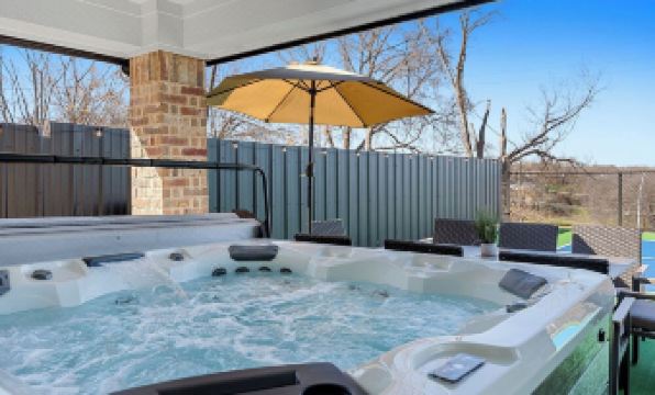 Experience a full-size regulation Pickleball game on our patio with stunning downtown Fort Worth views! This spacious single-story home sleeps up to 17 and is just minutes from the Stockyards, TCU, Dickies Arena, Dickies Arena, and more. Perfect for any group, it offers top-tier amenities, including Pickleball (balls and paddles provided), a hot tub, mini-golf, outdoor BBQ dining, a fully stocked coffee bar, high-speed WiFi, Smart TVs with Netflix, and premium bedding for ultimate comfort.