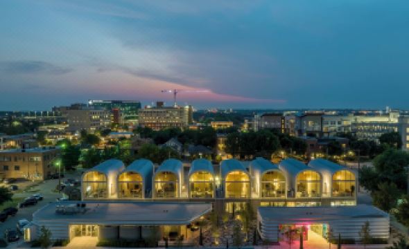 Nestled within PS1200's architectural landscape, this Stay is serene, experimental and innovative. With the inspired, calming lines of an arch—the walls become the roof, which become the walls again—and create a dialogue between space, light and landscape. Designed to prioritize creativity and connection, the space offers private moments within a vibrant public realm in the walkable Near Southside district of Fort Worth.