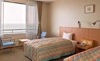 The hotel is located in a picturesque spot, opposite a stunningly beautiful beach with sea views. The swimming season runs from mid-July to the end of August. Despite the warm weather (it was around 30 degrees Celsius in October), swimming is prohibited due to the presence of life-threatening jellyfish in the waters. All beach amenities (changing rooms, showers, lifeguard service) close at the end of August. Nevertheless, it was pleasant to simply walk barefoot along the perfect sandy shore. At first glance, the hotel looks a bit old-fashioned, but inside, everything is perfectly organized and very cozy! The rooms are quite comfortable and large. They are decorated in Japanese style (photons and low tables), but we stayed in rooms with a European decor, with familiar beds and armchairs. All rooms have stunning sea views. The rooms have only a toilet and a sink. Showers and baths are not provided due to the large onsen on site. It is very spacious and comfortable, with large mineral pools both indoors and outdoors, showers with all the necessary toiletries, yukatas, slippers, etc. Despite the hotel being fully occupied, no one disturbed anyone else, and the room was spacious. I would also like to thank the staff: they were professional, responsive, and very polite. The organization and coordination of their work is simply impeccable and is one of the best examples of ideal Japanese service! Thank you for your hard work! There are always English-speaking staff at reception. Meals include breakfast and dinner: the choice is huge, featuring Japanese and European cuisine. Everything here will satisfy lovers of the freshest fish and premium seafood, seasonal fruits and vegetables, and if you visit in the spring, you will enjoy strawberries (there is a farm nearby). Alcohol is available for an additional fee. The hotel does not provide bicycle rentals. A free shuttle runs three times a day to the train station and ferry terminal. (You must reserve a seat on the shuttle to the hotel in advance; we did so through their Instagram page.) Nearby, to your right, there are lovely restaurants with sea views and a variety of cuisines if you feel like taking a stroll. It was a real treat to visit this wonderful place. Far from the hustle and bustle of the city :)