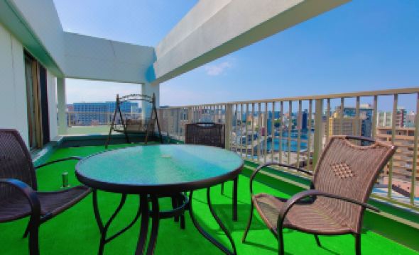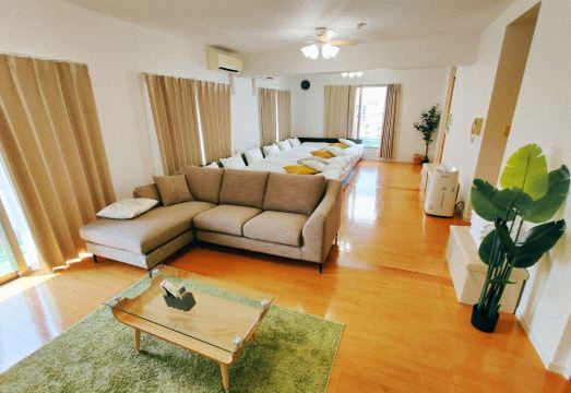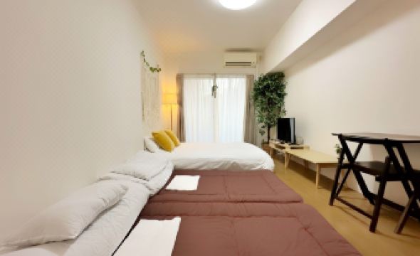 It took us about 7 minutes to walk from Hakata Station with the kids. The elevated highway nearby and the river visible from the front balcony of the accommodation, along with the sound of the trains, somehow felt very Japanese and charming. The self-check-in process wasn't bad, and I really loved the heated floor in the room. It was well-equipped with a washing machine, dryer, electric kettle, disposable toothbrushes, plenty of towels, a bathtub, basic dishes, and a gas stove.