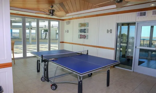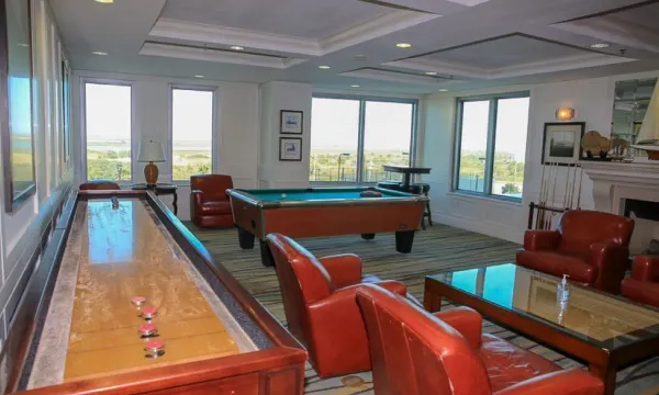 As our guests, you will enjoy a resort experience in the Palisade Palms, with access to two heated swimming pools, two hot tubs, a gas fire pit, tennis, pickleball, and basketball courts, a private fitness center and sauna, 24x7 front desk services, a free morning coffee bar, a roof terrace overlooking the pool and Gulf of Mexico, a game room with ping-pong, a pool table, foosball and air hockey, a private and spacious common library, and a media lounge with a big screen for those game-day Sundays!