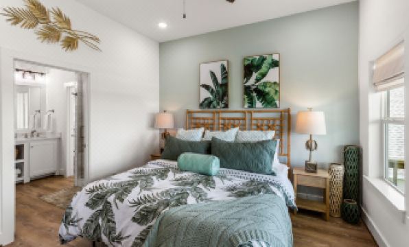 → Palm Bedroom (Top Floor): King bed, en-suite bathroom, beach views, 60” Smart TV