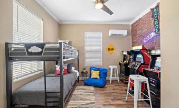 The Arcade Room (2nd Bedroom) - Get ready for endless fun and nostalgia in our Arcade Room, a vibrant space packed with entertainment.