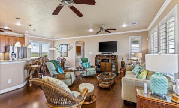 Welcome to your home-away-from-home where comfort meets elegance in our expansive, open-concept living area. Perfect for families and friends, this inviting space encourages you to unwind with plush seating and a serene decor that reflects the tranquility of the coast. Whether you're here to play games, share meals at the spacious dining area, or simply relax and watch a movie, every moment promises to be memorable. The natural light streaming through large windows enhances the warm, welcoming atmosphere, making it an ideal gathering space for creating lasting memories.
