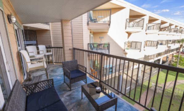Enjoy our new heated pool & large bubbly hot tub plus splash pad! Seahorse Corral is a fun place to be with colorful sophisticated décor! Beginning with the primary bedroom you will enjoy a direct entrance to the balcony. Take in the view from your comfortable king bed. You will relax in your private ensuite bath with shower. Enjoy the smart TV from your bed. The guest bedroom features a queen bed where you can enjoy watching your favorite shows on the provided DirectTV or streaming. The guest bath with tub shower combination is just across the hall.