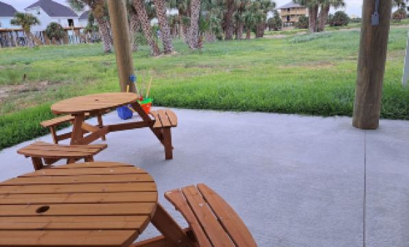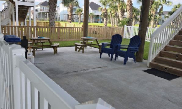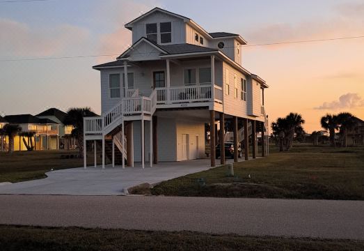 Book early for added savings! 20% off week bookings. Enjoy the beaches of Galveston Texas! Brand new Two story with 1860 square feet of blissful room, Plus 2 big Decks with unobstructed water views! Minutes to walk to beach, where you can sunbathe on expansive beach & shallow water (good for littles), ride waves, toes in the sand, fly a Texas size kite or just soak in the sun on a nice walk collecting seashells. Enjoy the beautiful kitchen or cookout on ground level with family games. This is paradise!!
