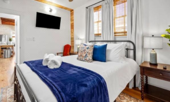 Historic charm meets comfort with 2 bedrooms, 2 bathrooms and a queen sofa bed. King bed in the primary suite! Ideal for families, couples, or solo adventurers!About pets:No pets allowed.About checkOut:Check out before 11:00 AM.About children:Children allowed: ages 0-17.About checkIn:Check in after 4:00 PM.About smoking:Smoking is not permitted.About minBookingAge:Minimum age to rent: 18.About events:No events allowed.