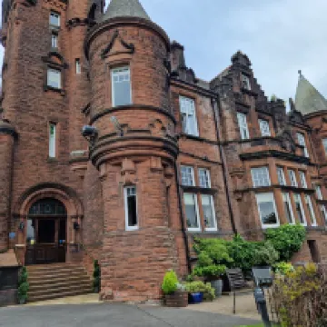 This is a lovely traditional looking hotel in an plush upmarket suburb of Glasgow. We were attending a concert at Bellahouston Park so was an ideal location. The room we had was spacious and clean, the service from the staff was exemplary and should we be in a the area again would consider staying there.