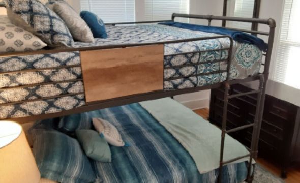 Please come and stay at our cozy 2 story Grand Rapids Home. You have access to the whole house, and this rental has just been newly remodeled and refurnished with all the amenities of home. Specifically, this 2 bedroom house has 1 main floor bedroom with a queen-sized bunk bed as well as a similar queen-sized bunk bed in the 1 upstairs bedroom to easily accommodate 8 guests. There is a full-sized bath upstairs, and a half bath downstairs. A washer/dryer is provided for use in the basement. Two tables have also been set-up in the basement to make room for play or entertaining. Wifi Internet is available and cable t.v. is set-up above the study desk within the spacious living room.