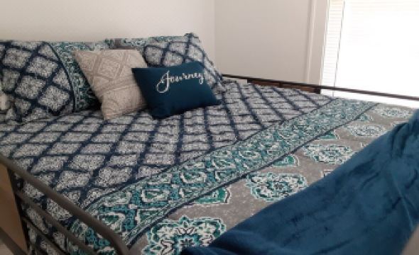 This air conditioned house is attractively decorated and has hardwood floors through-out the 1100 sq. ft. finished house. If you need other sleeping arrangements, use the sectional couch with ottoman in the living room area. The dining room table comfortably sits six to eight adults and is off of the kitchen as one heads toward the living room The kitchen comes with a good-sized refrigerator, microwave, gas stove, and dishes, pans, & etc. needed for preparing meals.