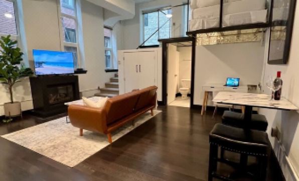 The apartment features a new Serta queen bed, nice linens, a nespresso coffee maker, fireplace, a wine/beverage center and stainless appliances. 50" smart TV, desk, good wifi, marble countertops, and a rain head shower.
